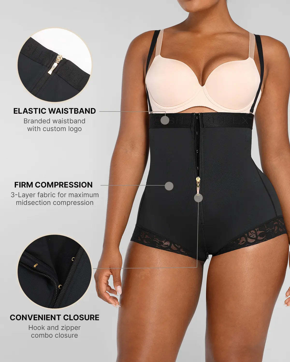• 3-Layer fabric for maximum midsection compression.