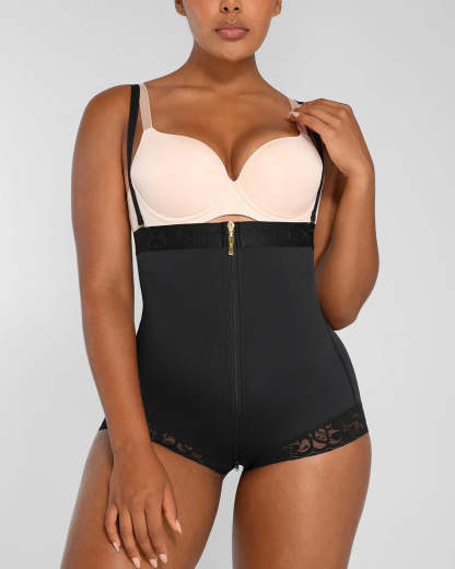 Enhance your figure with BOOT-YEAH™ AirSlim® Open Bust Shaping Brief. Experience a smooth silhouette with the high waist and shaping fabric, complemented by a fashionable logo waistband. The 3-layer fabric offers optimal midsection compression for a perfect fit. Its panty style makes it invisible under clothing, suitable for daily wear, special occasions, and as a post-surgical compression garment.