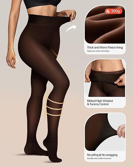 Fleece Lined Tights for Women - OEAK Invisible One-Line-Crochet Tights are super stretchy, soft, and comfortable. The high-quality material is durable and non-see-through, offering full coverage with a 4-way stretch.