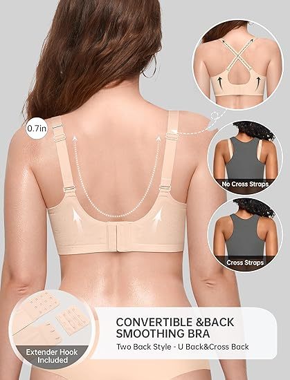 Everyday Bra for All-Day Wear - This seamless bra has an invisible under the clothing,it is suitable for many state wear. The design features adjustable and convertible straps that are anti-slip and wider to reduce the hassle of slipping straps and shoulder pressure. This comfortable bra can be worn in two different ways, as a U-back or cross-back for more support.