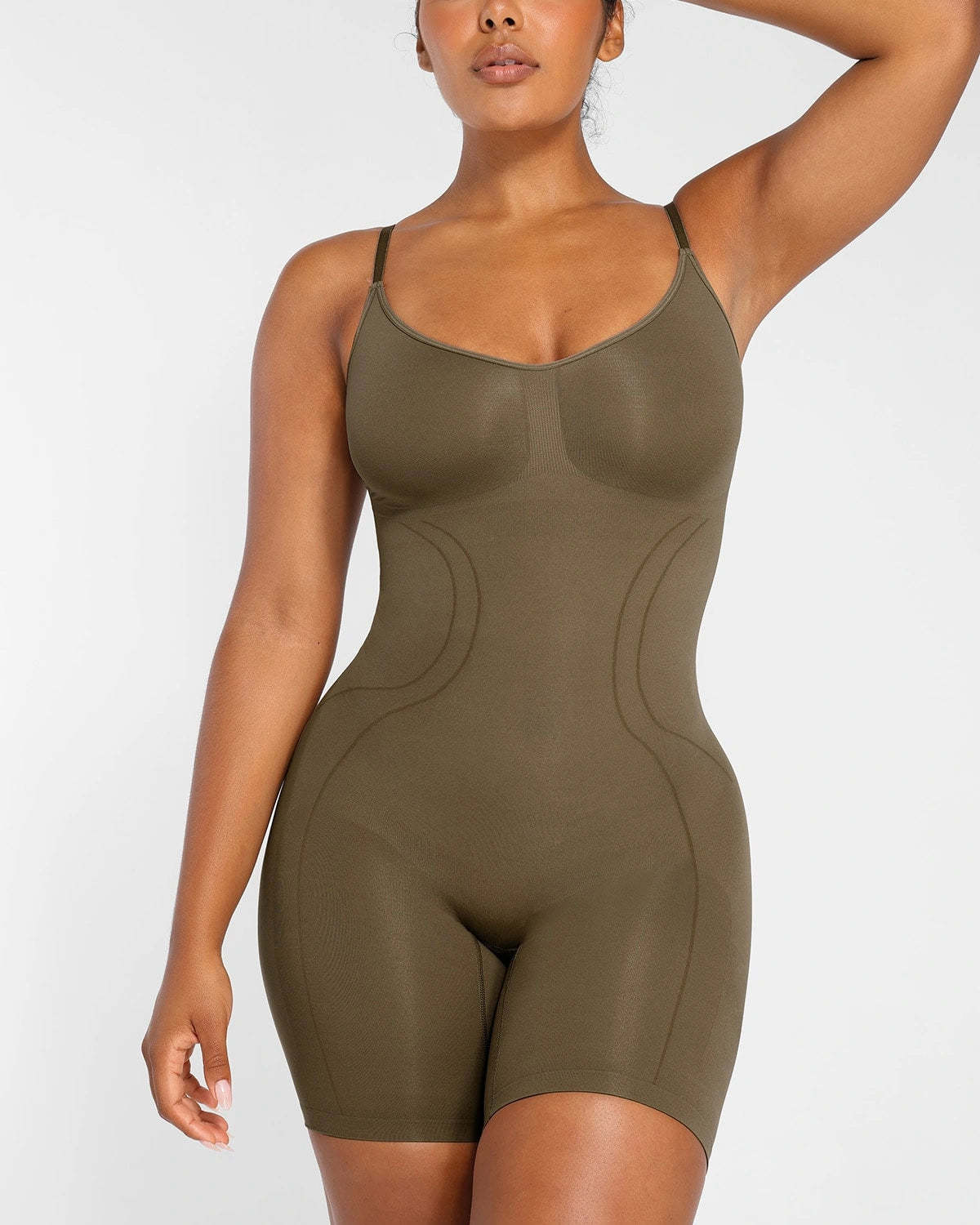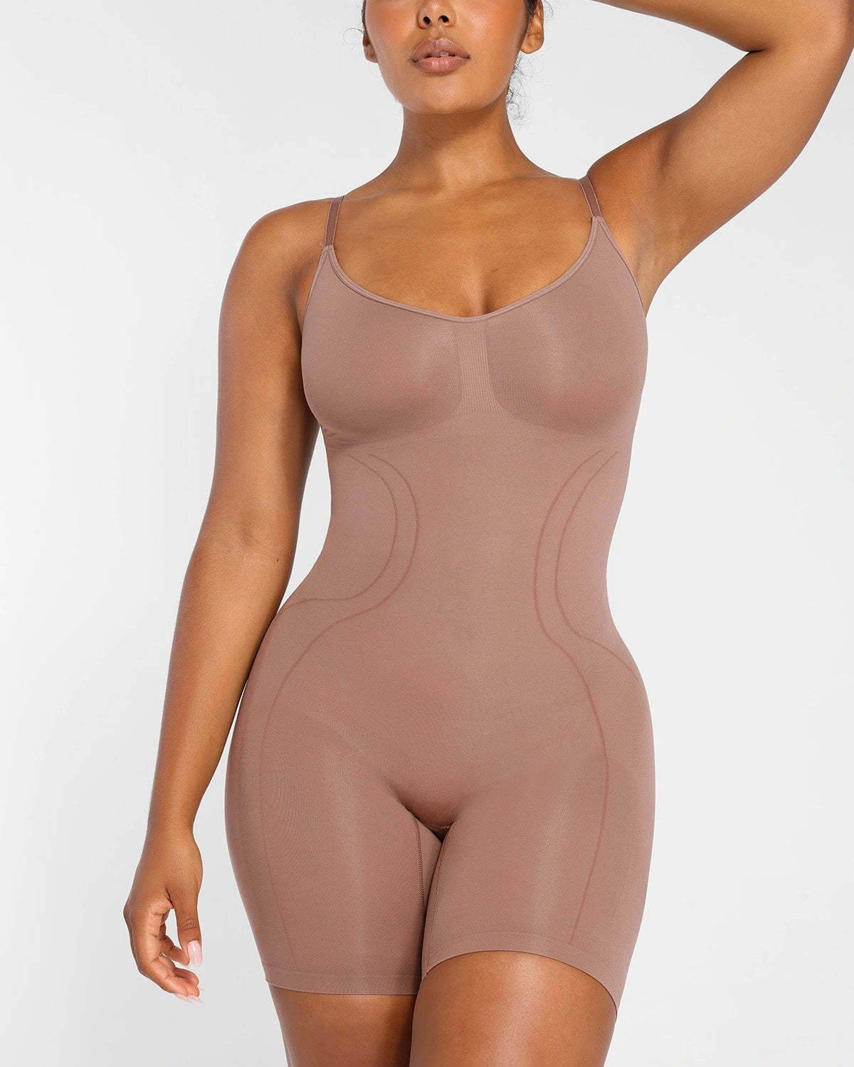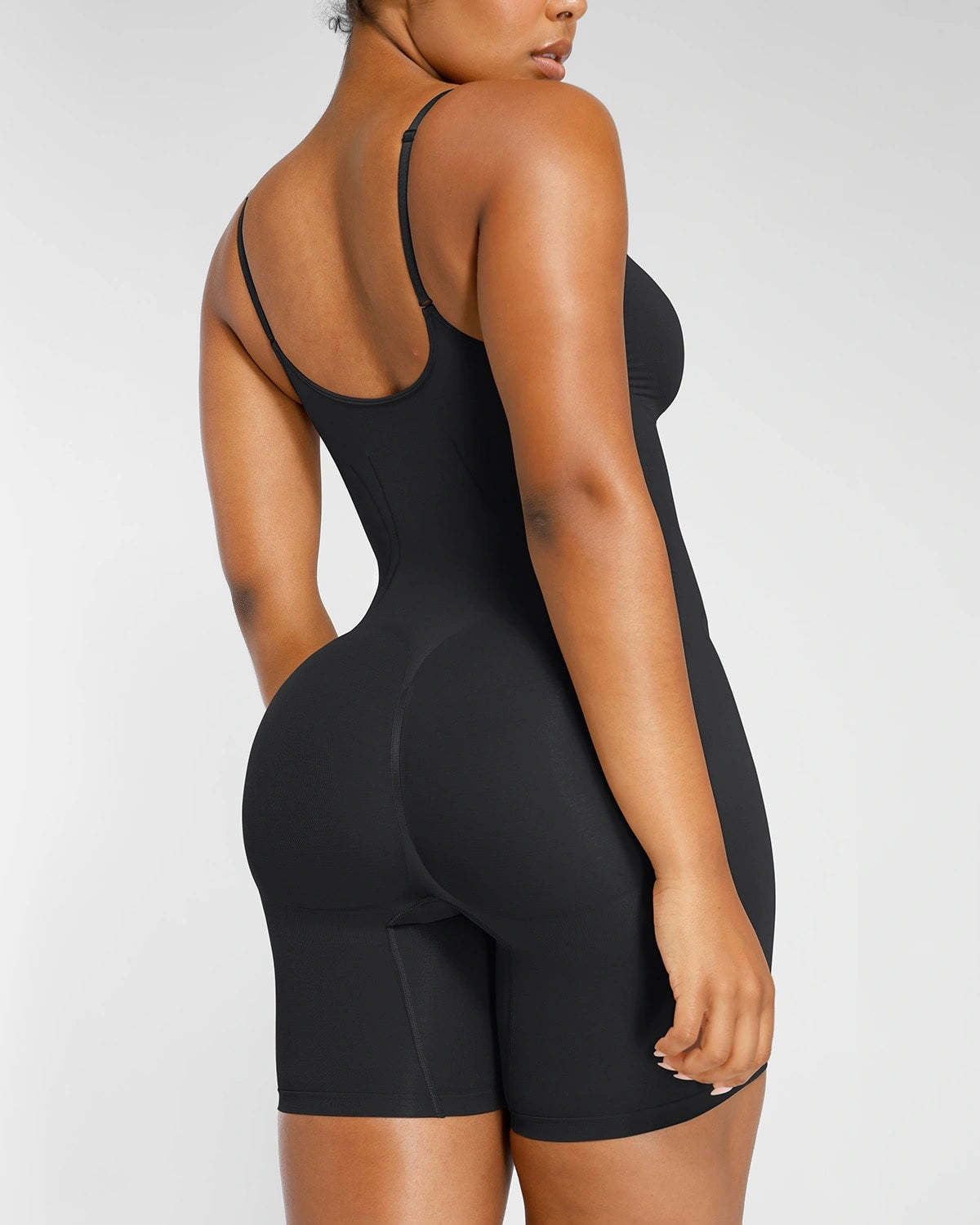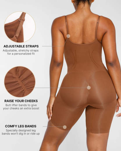 Expertly designed for all-day comfort and contouring, this seamless mid-thigh bodysuit provides tummy control and supports the core while lifting the butt and chest. The breathable and stretchy material allows for ideal airflow, ensuring a perfect fit for all body types.