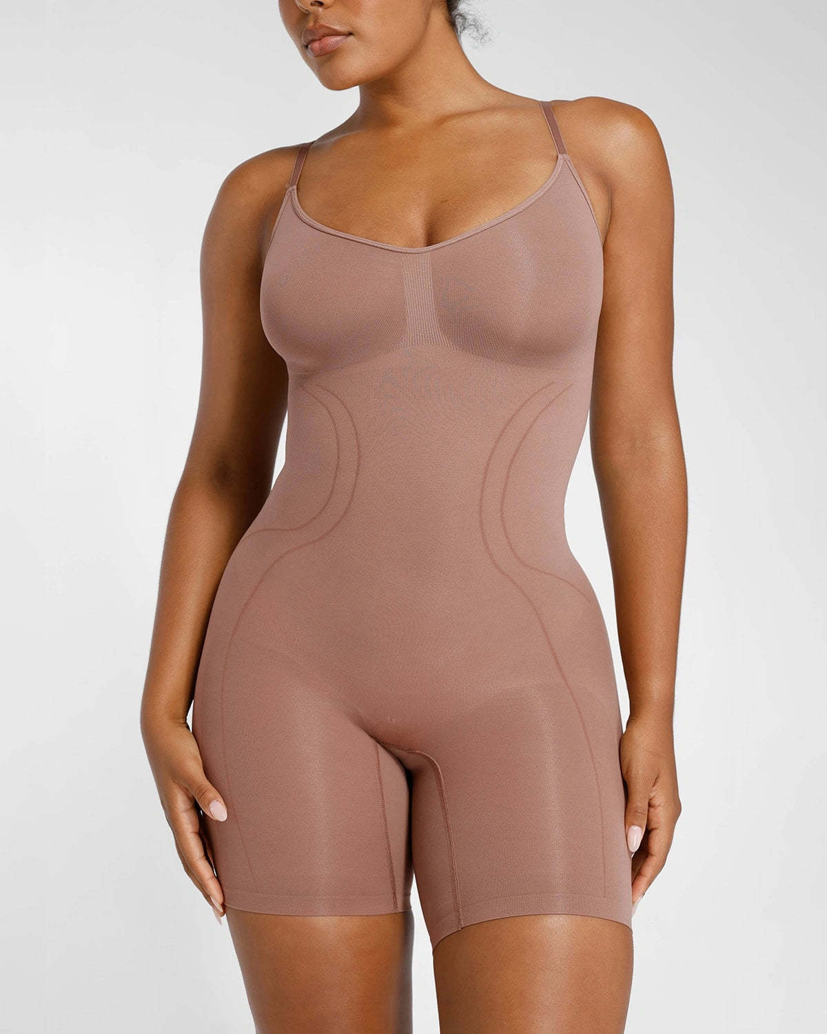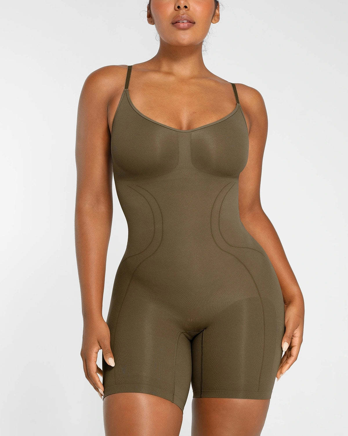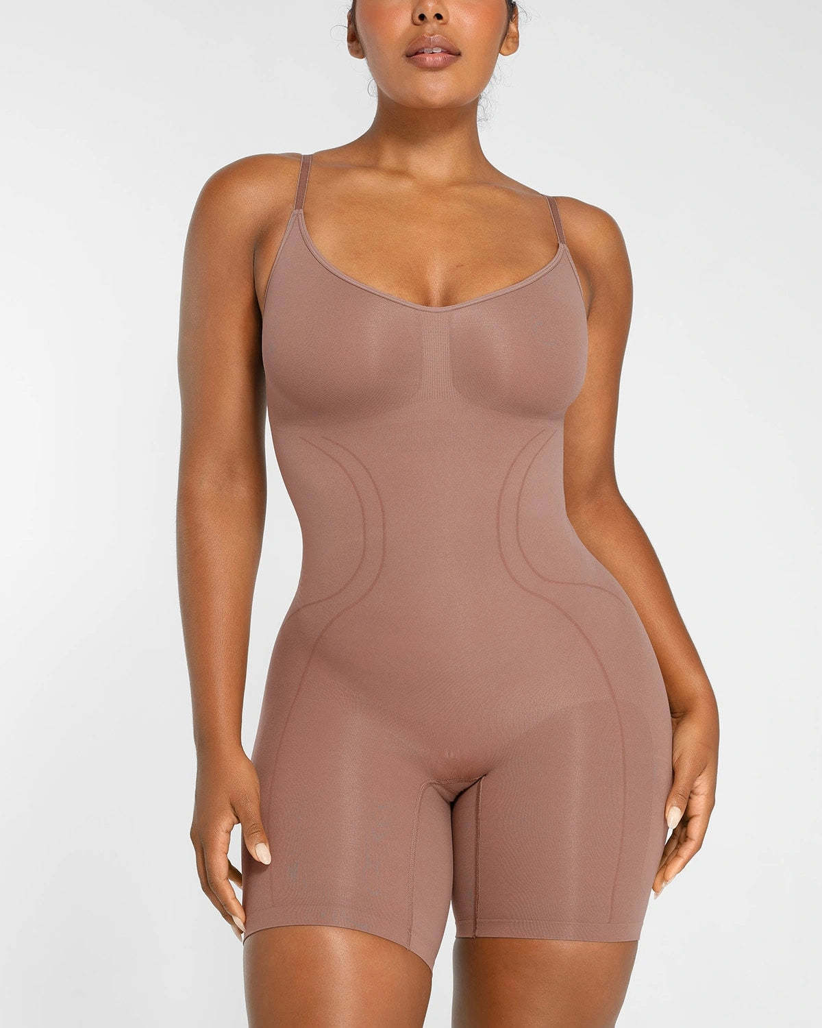 Expertly designed for all-day comfort and contouring, this seamless mid-thigh bodysuit provides tummy control and supports the core while lifting the butt and chest. The breathable and stretchy material allows for ideal airflow, ensuring a perfect fit for all body types.